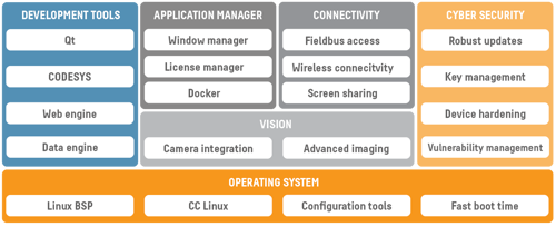 CrossControl offers an open and modular software platform for our range of display computers. The platform supports a wide spectrum of functionality in visualization, vision, process control, wireless and more. Our pre-packaged toolchains, modules and recipes make system development leaner. With the open platform approach, customers have freedom of choice and can use the parts of the platform that are relevant for each application and situation.